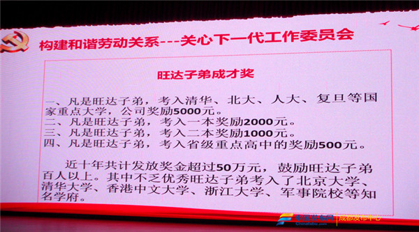 旺達(dá)集團(tuán)董事長、黨支部書記唐志偉,總裁辦主任張小娟結(jié)合對(duì)黨的十九屆四中全會(huì)精神的學(xué)習(xí)體會(huì),交流了公司“真情實(shí)意跟黨走腳踏實(shí)地辦企業(yè)”的黨建歷程和關(guān)心下一代工作。四川旺達(dá)集團(tuán)下轄三家全價(jià)料公司、一家科技公司、一家銷售公司、一家養(yǎng)殖試驗(yàn)場(chǎng),年產(chǎn)能100萬噸,員工近800人。集團(tuán)于1995年在崇州市三江鎮(zhèn)成立,2001年11月1日成立黨支部,黨員從最初的7人發(fā)展到現(xiàn)在的22名,始終不忘初心,牢記使命,以“誠信擔(dān)當(dāng)拼搏創(chuàng)新、感恩分享”作為企業(yè)價(jià)值觀,充分發(fā)揮組織優(yōu)勢(shì),體現(xiàn)黨員先鋒模范作用,設(shè)立“旺達(dá)子弟成才獎(jiǎng)”,近十年共計(jì)發(fā)放50余萬元,助力100多名青少年步入清華、北大、香港中文大學(xué)、浙江大學(xué)、軍事院校等知名學(xué)府;設(shè)立救助基金,累計(jì)幫扶企業(yè)員工、客戶、用戶及周邊群眾100余人,金額100萬元以上;設(shè)立退休制度,凡是在旺達(dá)工作到退休年齡的職工,除了享受國家社保,公司還發(fā)放退休金;豬瘟期間,公司向養(yǎng)殖戶免費(fèi)發(fā)放3萬多瓶消毒液、生石灰200余噸;2019年3月,公司修復(fù)三江鎮(zhèn)宋橋、崇新兩個(gè)村的1000多平方主干道……