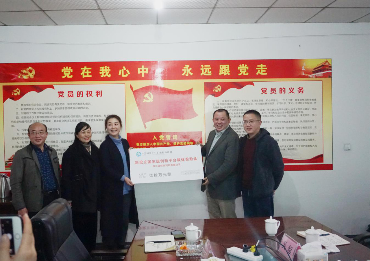 崇州市委組織部為旺達(dá)頒發(fā)國家級(jí)企業(yè)技術(shù)中心獎(jiǎng)勵(lì)資金