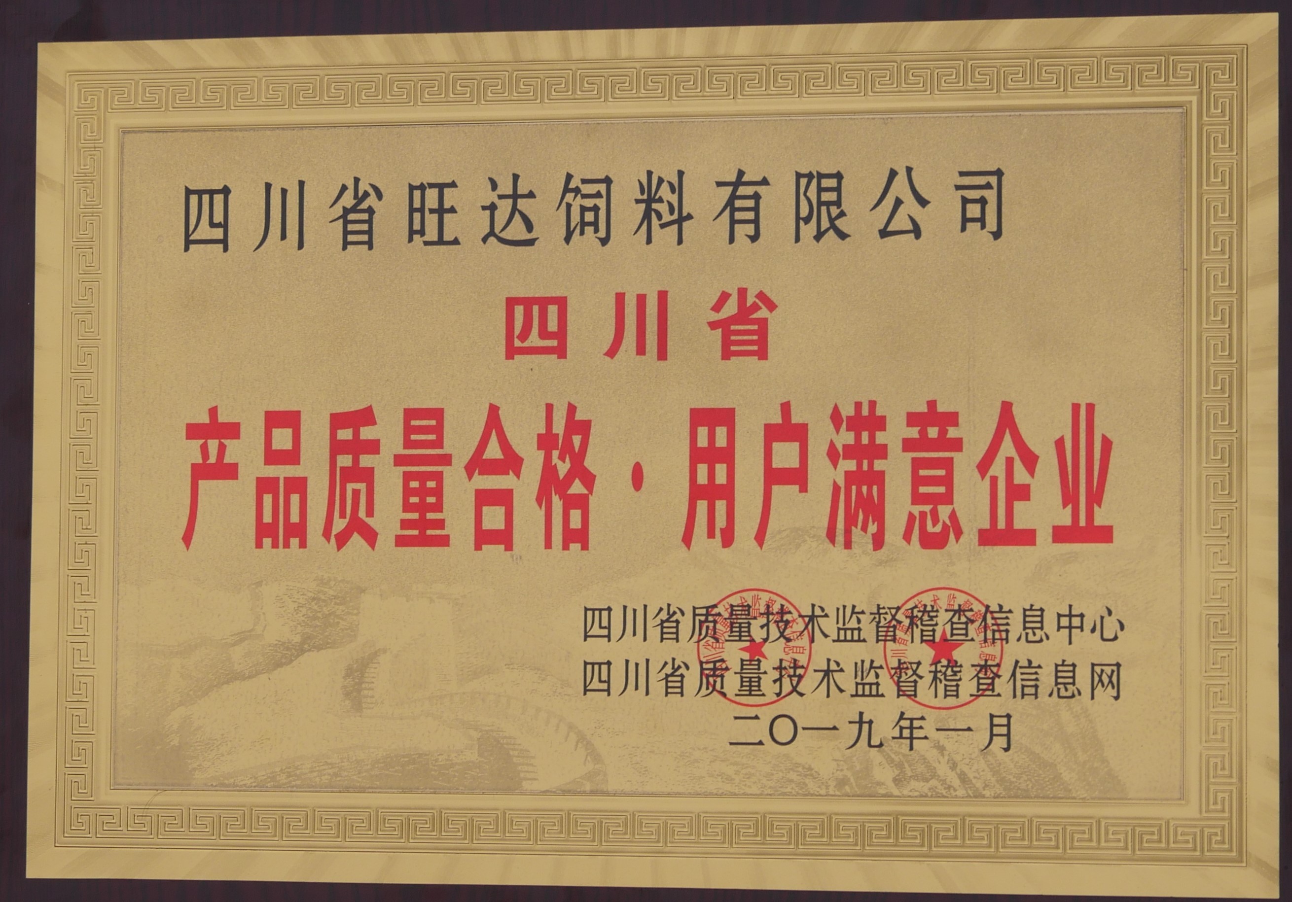 產(chǎn)品質(zhì)量合格,用戶滿意企業(yè)